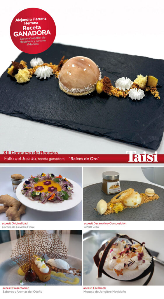La XII Edición del Concurso de Recetas TAISI, dedicada al jengibre, ya tiene sus ganadores. Este año, las propuestas han destacado por su creatividad, sabor, alto nivel técnico y un excelente uso de los productos Taisi.